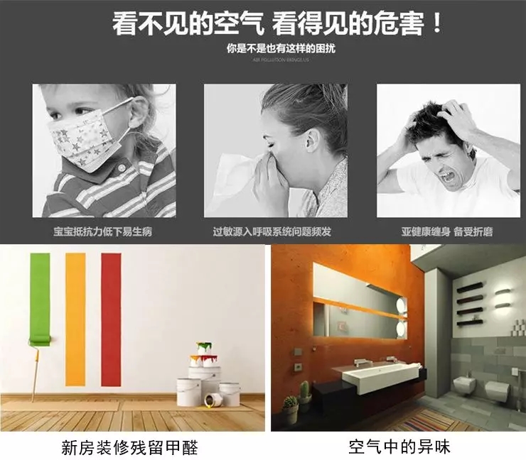 新房裝修殘留甲醛、二手煙、室內(nèi)粉塵及以粉塵顆粒物為介質(zhì)傳播的細(xì)菌病菌都是被我們?nèi)粘:雎缘峙c我們身體健康息息相關(guān)的。